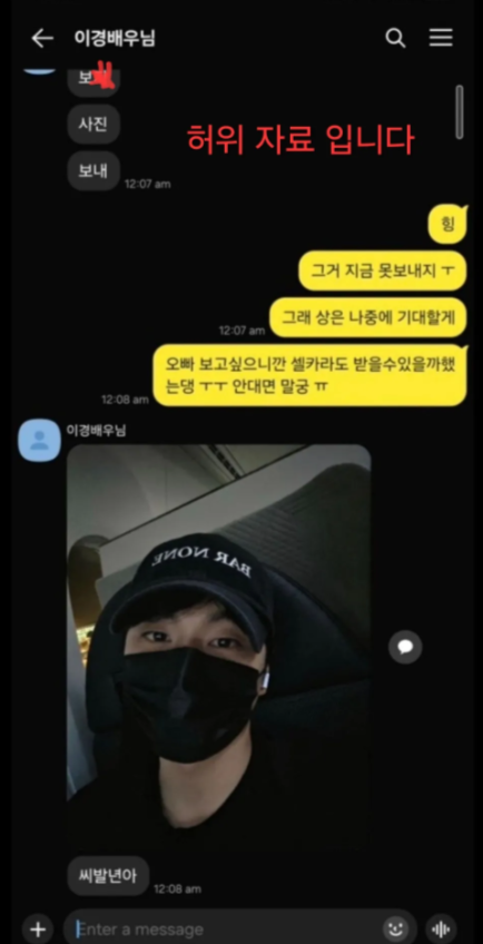 그러나 전날까지만 해도 A씨는 "저번에 소속사한테 거짓말이라고 그랬던 건 맞다. 이이경 측이 '그렇게 하지 않으면 신고하겠다'고 협박해서 그랬다"며 오히려 자신이 피해자인 양 주장했다. "증거를 모으는 중이니 조금만 기다려 달라"고도 했다.