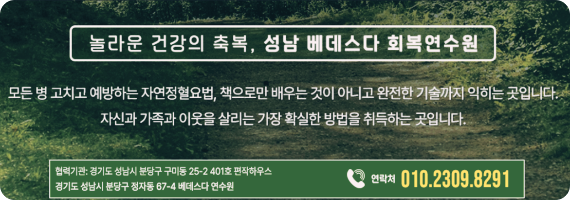 안녕하세요, 분당 자연정혈교육센터입니다.