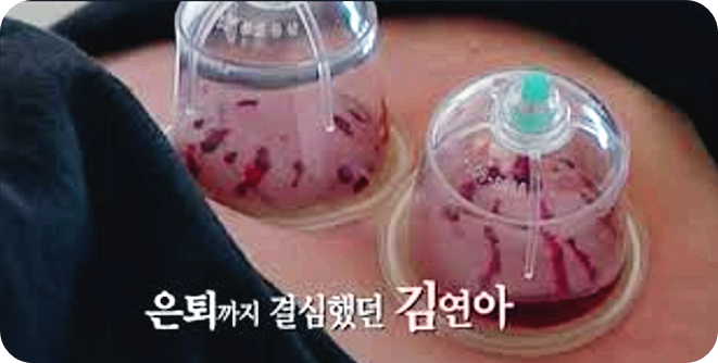 처음엔 무시하고 의심하더니 저의 어머니가 좋아지신 걸 옆에서 지켜보다가 본인 스스로 해달라고 요청해서, 처음부터 신장혈을 제5부항까지 하였습니다. 어머니보다 어혈량이 무척 많이 나온 걸 보고 본인도 무척 놀라는 눈치였습니다.